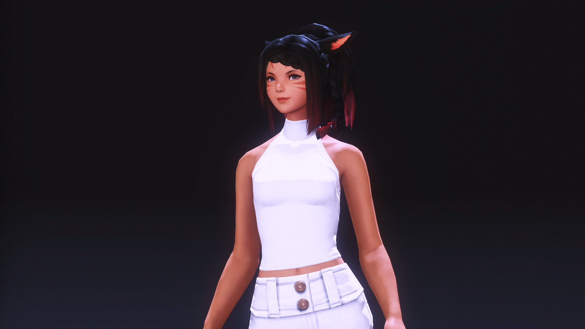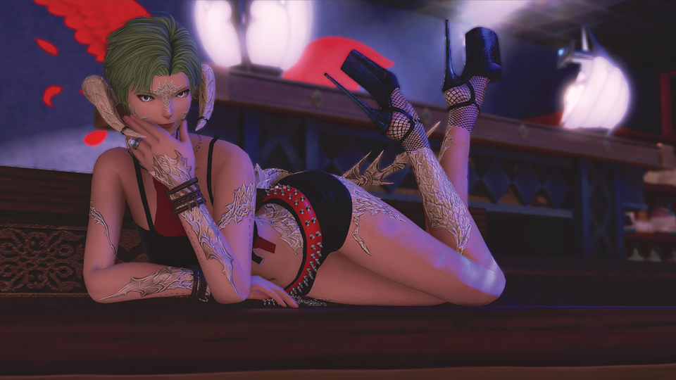 A flirtatious and friendly Miqo'te, with a quick wit and a tendency to tease. She is always happy to meet new people, and does her best to make guests feel welcome. Whether you need some company on the dancefloor, while you gamble, or are looking for a more intimate encounter, she will do her best to make your night memorable.