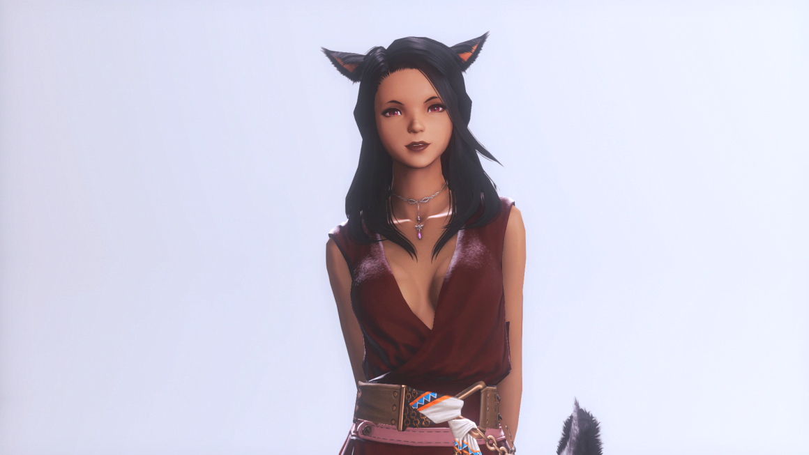 A flirtatious and friendly Miqo'te, with a quick wit and a tendency to tease. She is always happy to meet new people, and does her best to make guests feel welcome. Whether you need some company on the dancefloor, while you gamble, or are looking for a more intimate encounter, she will do her best to make your night memorable.